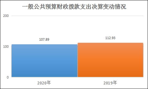2020年一般公共预算财政拨款支出107.89万元,占本年支出合计的91.25%。与2019年相比,一般公共预算财政拨款减少5.04万元,下降4.46%。主要变动原因是日常公用经费减少。