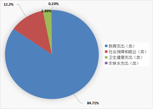 (二)一般公共预算财政拨款支出决算结构情况 2019年一般公共预算财政拨款支出718.43万元,主要用于以下方面:教育支出(类)608.62万元,占84.71%;社会保障和就业(类)支出87.63万元,占12.2%;卫生健康支出20.77万元,占2.89%;农林水支出(类)1.41万元,占0.20%。