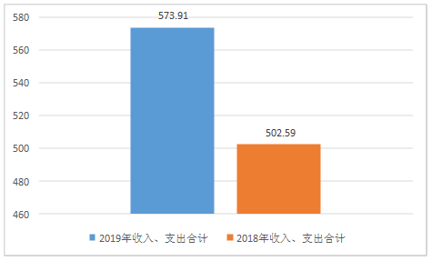 一、 收入支出决算总体情况说明 2019年度收、支总计573.91万元。与2018年相比,收、支总计各增加71.32万元,增长14.19%。主要变动原因是学生增多,政府对义教均衡增加投入,对学校操场进行塑胶操场的改造,校园文化打造。