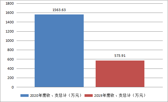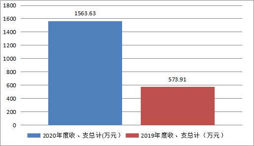 2020年度收、支总计1563.63万元。与2019年相比,收、支总计增加989.72万元,增加172.45%。主要变动原因增加校舍校园安全网络、新建学生宿舍楼工程的建设。