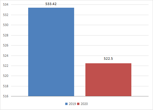 2020年,我校支出总额522.5万元,其中: 基本支出 361.4万元,项目支出 16.1万元。