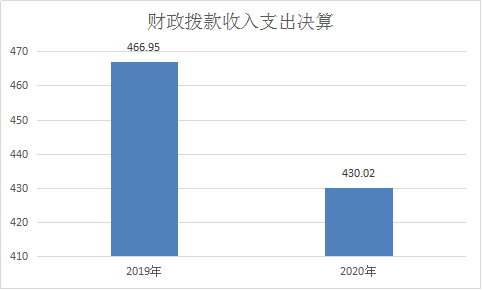 2020年度收、支总计430.02万元。与2019年相比,收、支总计减少36.93万元,下降7.91%。主要变动原因是人员