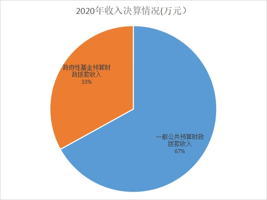 (一)部门财政资金收入情况。2020年全年收入合计4804.6万元,其中:一般公共预算财政拨款收入3217.66万元,政府性基金预算财政拨款收入1586.94万元。