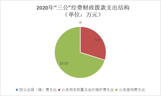 2020年“三公”经费财政拨款支出决算中,因公出国(境)费支出决算0万元,占0%;公务用车购置及运行维护费支出决算6.6万元,占29.84%;公务接待费支出决算15.52万元,占70.16%。具体情况如下: