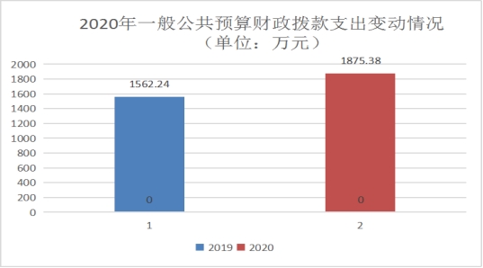 2020年一般公共预算财政拨款支出1875.38万元,占本年支出合计的99.34%。与2019年相比,一般公共预算财政拨款增加313.14万元,增长20%。主要变动原因是上年结转结余以及脱贫攻坚工作经费、人员经费增加。