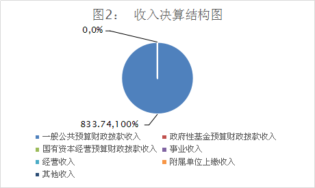 2020年本年收入合计833.74万元,其中:一般公共预算财政拨款收入833.74万元,占100%。