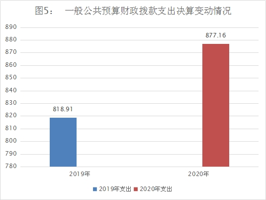 2020年一般公共预算财政拨款支出877.16万元,占本年支出合计的100%。与2019年相比,一般公共预算财政拨款增加58.25万元,增长7.11%。主要变动原因是预算内项目增加。