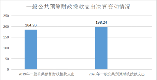 2020年一般公共预算财政拨款支出198.23万元,占本年支出合计的71%。与2019年相比,一般公共预算财政拨款增加13.31万元,增加6.71%。主要变动原因增加了灾害防治救灾及应急管理支出。
