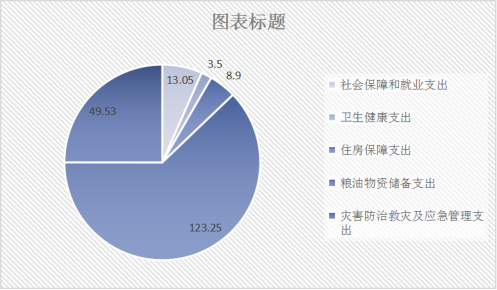 2020年一般公共预算财政拨款支出198.23万元,主要用于以下方面:社会保障和就业(类)支出13.05万元,占6.5%;卫生健康支出(类)3.5万元,占1.8%;住房保障支出(类)8.9万元,占4.5%,粮油物资储备支出(类)支出123.25万元,占62.2%,灾害防治及应急管理支出(类)支出49.53万元,占25%。