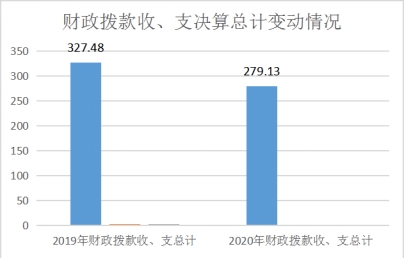 2020年财政拨款收、支总计279.13万元。与2019年相比,财政拨款收、支总计各减少48.35万元,下降14.76%。主要变动原因是基本支出缩减。