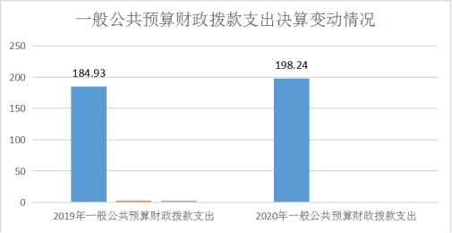 2020年一般公共预算财政拨款支出198.23万元,占本年支出合计的71%。与2019年相比,一般公共预算财政拨款增加13.31万元,增加6.71%。主要变动原因增加了灾害防治救灾及应急管理支出。