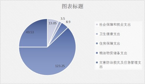 2020年一般公共预算财政拨款支出198.23万元,主要用于以下方面:社会保障和就业(类)支出13.05万元,占6.5%;卫生健康支出(类)3.5万元,占1.8%;住房保障支出(类)8.9万元,占4.5%,粮油物资储备支出(类)支出123.25万元,占62.2%,灾害防治及应急管理支出(类)支出49.53万元,占25%。