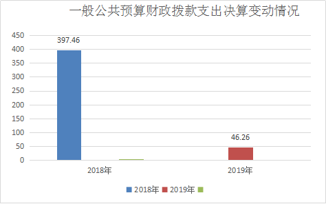 2019年一般公共预算财政拨款支出46.26万元,占本年支出合计的1.84%。与2018年相比,一般公共预算财政拨款减少351.2万元,减少88.36%。主要变动原因是减少一般公共预算财政拨款支出,增加政府性基金预算财政拨款支出。