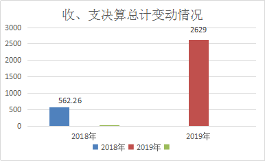 2019年度收、支总计2629万元。与2018年相比,收、支总计各增加2063.74万元,增长367%。主要变动原因是增加地方自行试点项目收益专项债券收入。