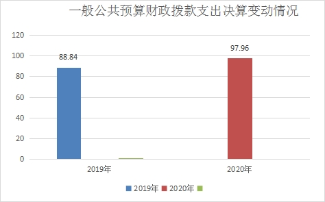 2020年一般公共预算财政拨款支出97.96万元,占本年支出合计的98%。与2019年相比,一般公共预算财政拨款增加9.12万元,增长10.27%。主要变动原因是去世一人,增加抚恤资金。