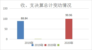 2020年度收、支总计99.96万元。与2019年相比,收、支总计各增加11.12万元,增长12.52%。主要变动原因是去世一人,增加抚恤资金。