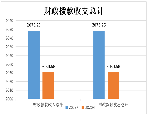 2020年度收、支总计2030.68万元。与2019年相比,收、支总计各减少47.58万元,下降2.3%。主要变动原因是因2020年脱贫攻坚项目减少。