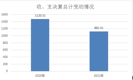 2022年度收、支总计882.41万元。与2021年相比,收、支总计各减少238.1万元,下降21.2%。主要变动原因是财政收回以前年度应返还额度导致年初结转结余减少、收支总量减少。