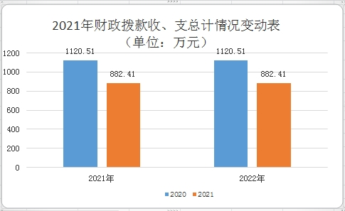 2022年财政拨款收、支总计882.41万元。与2021年相比,财政拨款收、支总计各减少238.1万元,下降21.2%。主要变动原因是人员经费支出减少,厉行节约。