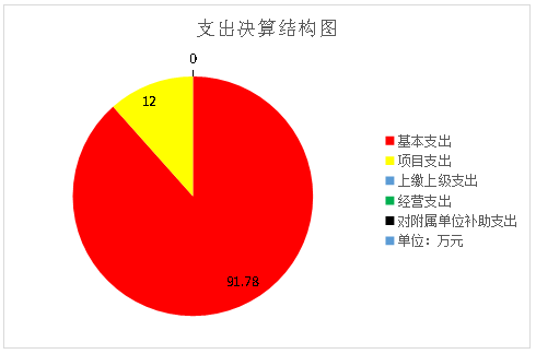 2020年本年支出合计103.78万元,其中:基本支出91.78万元,占88.44%;项目支出12万元,占11.56%;上缴上级支出0万元,占0%;经营支出0万元,占0%;对附属单位补助支出0万元,占0%。