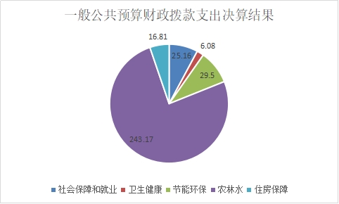 2020年一般公共预算财政拨款支出320.72万元,主要用于以下方面:社会保障和就业支出(类)支出25.16万元,占7.84%;卫生健康支出(类)6.08万元,占1.9%;节能环保支出(类)支出29.5万元,占9.2%;农林水支出(类)支出243.17万元,占75.82%;住房保障支出(类)支出16.81万元,占5.24%。