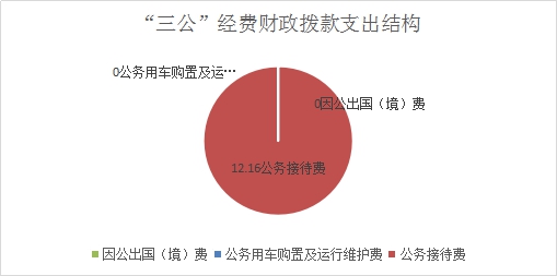 2019年“三公”经费财政拨款支出决算中,因公出国(境)费支出决算0万元,占0%;公务用车购置及运行维护费支出决算0万元,占0%;公务接待费支出决算12.16万元,占100%。具体情况如下: