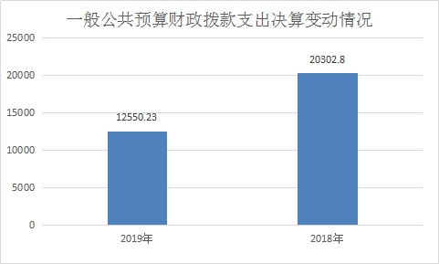 2019年一般公共预算财政拨款支出12550.24万元,占本年支出合计的77.17%。与2018年相比,一般公共预算财政拨款减少7752.56万元,下降38.18%。主要变动原因是留有去年结转结余资金及项目精准化。