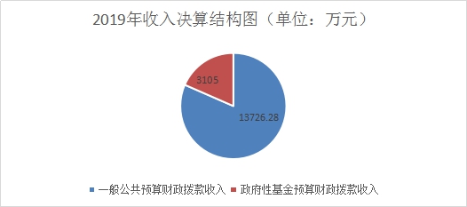 2019年本年收入合计16831.28万元,其中:一般公共预算财政拨款收入13726.28万元,占81.55%;政府性基金预算财政拨款收入3105万元,占18.45%。