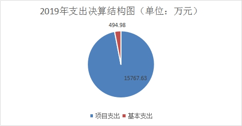 2019年本年支出合计16262.61万元,其中:基本支出494.98万元,占3.04%;项目支出15767.63万元,占96.96%。