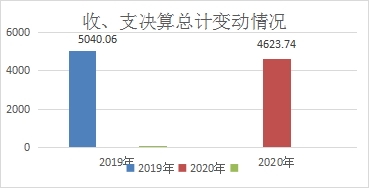 2020年度收、支总计4623.74万元。与2019年相比,收、支总计各减少416.32万元,下降8.26%。主要变动原因是机构改革,人员减少,项目缩减。
