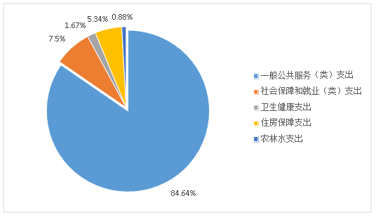 2020年一般公共预算财政拨款支出150.42万元,主要用于以下方面:一般公共服务(类)支出127.27万元,占84.61%;社会保障和就业(类)支出11.28万元,占7.5%;卫生健康支出2.51万元,占1.67%;农林水支出1.32万元,占0.88%;住房保障支出8.04万元,占5.34%。