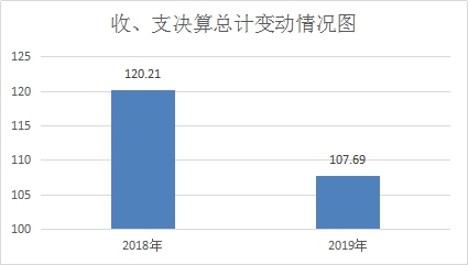 2019年度收、支总计107.69万元。与2018年相比,收、支总计各减少12.52万元,下降11.63%。主要变动原因是人员经费减少和项目资金减少。