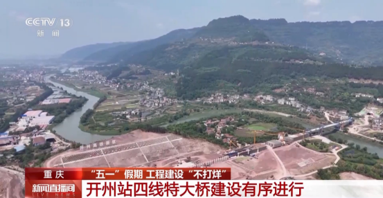 在重庆市开州区的开州站四线特大桥施工现场,塔吊林立、机器轰鸣,项目建设有序进行。开州站四线特大桥全长635米,是联通西渝高铁开州站的重要枢纽工程,也是标段重难点工程之一。目前,大桥已完成总进度的60%。