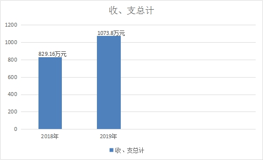 2019年度收、支总计1073.8万元,与2018年相比,增加244.64万元,增长29.5%,主要原因为纪检监察体制改革,人员编制与实际人数增加,相应收支增加。