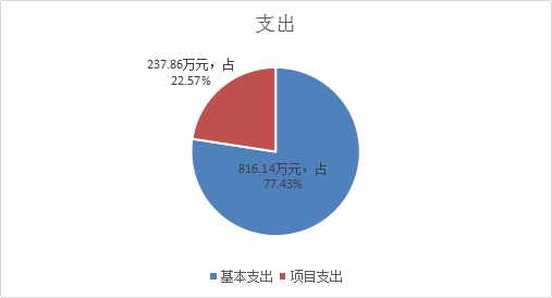 2019年支出合计1054万元。其中:基本支出816.14万元,占77.43%;项目支出237.86万元,占22.57%;上缴上级支出0万元,占0%;经营支出0万元,占0%;对附属单位补助支出0万元,占0%。