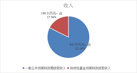2019年收入合计1026.18万元。其中:一般公共预算财政拨款收入845.97万元,占82.44%;政府性基金预算财政拨款收入180.21万元,占17.56%;上级补助收入0万元,占0%;事业收入0万元,占0%;经营收入0万元,占0%;附属单位上缴收入0万元,占0%;其他收入0万元,占0%。