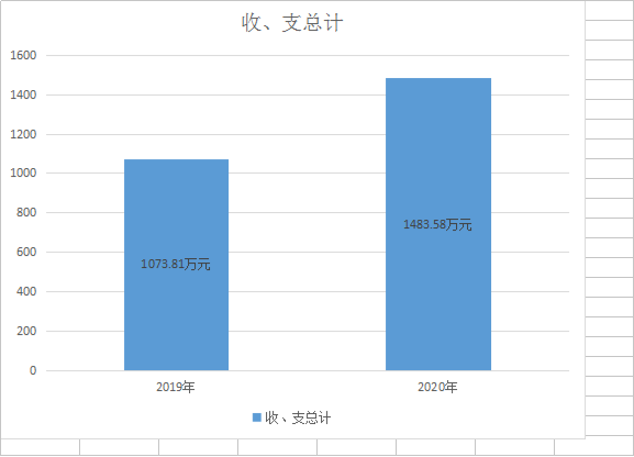 2020年度收、支总计1483.58万元。与2019年相比收、支总计各增加409.77万元,增长38.16%。主要变动原因是体制改革,人员编制与实际人数增加,项目增加,相应收支增加。