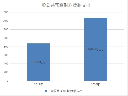 2020年一般公共预算财政拨款支出1476.57万元,占本年支出合计的100%。与2019年相比,一般公共预算财政拨款增加602.78万元,增长68.99%。主要变动原因体制改革,人员编制与实际人数增加,项目增加,支出增加。
