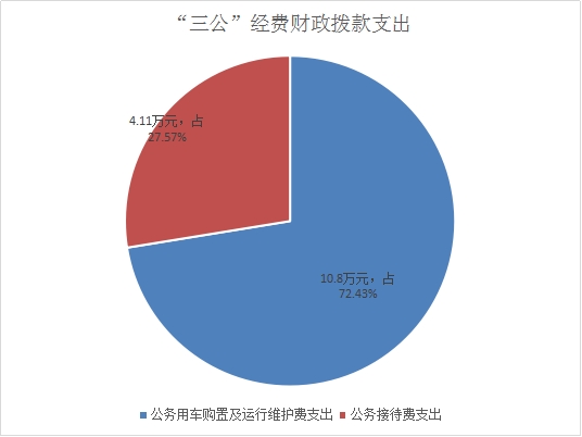 2020年“三公”经费财政拨款支出决算中,因公出国(境)费支出决算0万元,占0%;公务用车购置及运行维护费支出决算10.8万元,占72.43%;公务接待费支出决算4.11万元,占27.57%。具体情况如下: