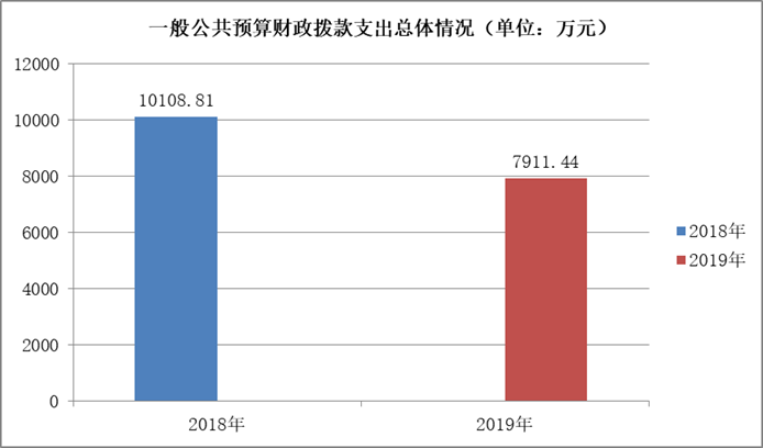 2019年一般公共预算财政拨款支出7911.44万元,占本年支出合计的98.06%。与2018年相比,一般公共预算财政拨款减少2197.37万元,下降21.74%。主要变动原因是项目未完成,资金结转下年使用。