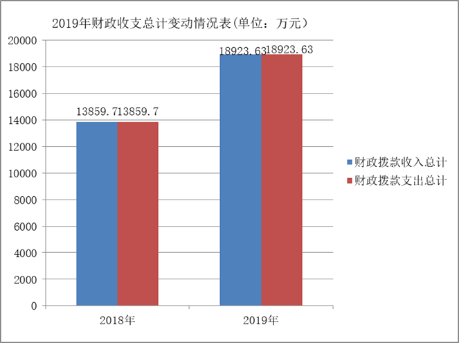 2019年财政拨款收、支总计18923.63万元。与2018年相比,财政拨款收、支总计各增加5063.93万元,增长36.54%。主要变动原因是脱贫攻坚产业项目增加。