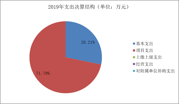 2019年本年支出合计8067.75万元,其中:基本支出2275.74万元,占28.21%;项目支出5792.01万元,占71.79%;上缴上级支出0万元,占0%;经营支出0万元,占0%;对附属单位补助支出0万元,占0%。