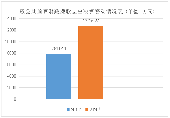 2020年一般公共预算财政拨款支出12725.27万元,占本年支出合计的95.21%。与2019年相比,一般公共预算财政拨款增加4813.83万元,增长60.85%。主要变动原因是本年度脱贫攻坚产业项目增加。