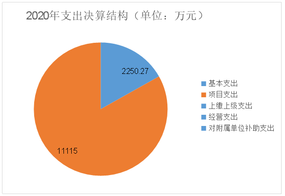 2020年本年支出合计13365.26万元,其中:基本支出2250.27万元,占16.84%;项目支出11115万元,占83.16%;上缴上级支出0万元,占0%;经营支出0万元,占0%;对附属单位补助支出0万元,占0%。