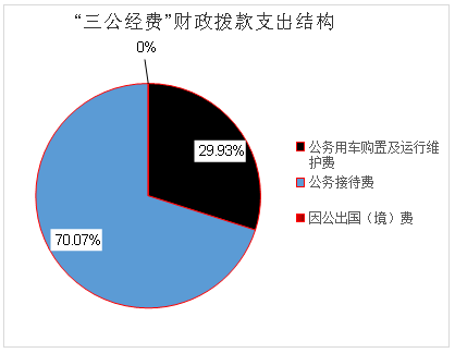 32.“三公”经费:指部门用财政拨款安排的因公出国(境)费、公务用车购置及运行费和公务接待费。其中,因公出国(境)费反映单位公务出国(境)的国际旅费、国外城市间交通费、住宿费、伙食费、培训费、公杂费等支出;公务用车购置及运行费反映单位公务用车车辆购置支出(含车辆购置税)及租用费、燃料费、维修费、过路过桥费、保险费等支出;公务接待费反映单位按规定开支的各类公务接待(含外宾接待)支出。