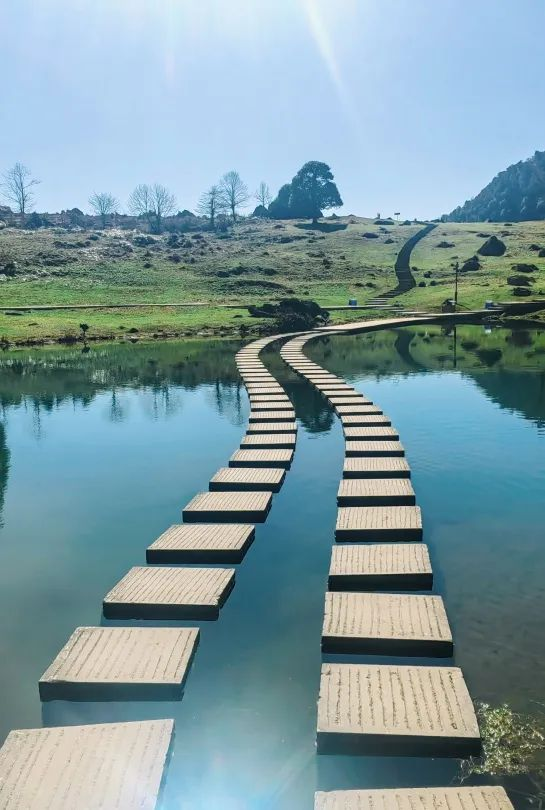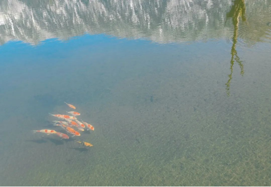 清澈的湖水倒映着蓝天白云