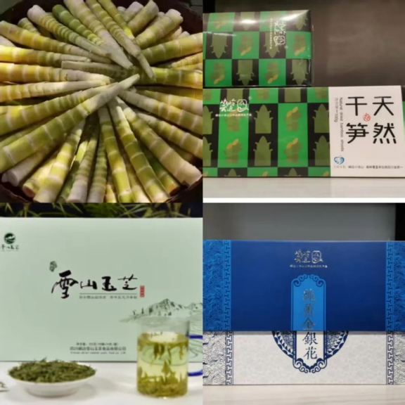 峨边新鲜三月笋、调味笋、菌菇、茶叶、腊肉等“土味珍品”等您品尝;