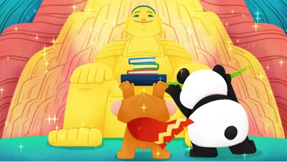 暖场动画《藏酋猴的远行之走进市中区》,看猴子和熊猫拜福大佛姥爷!