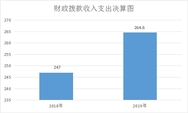 2019年财政拨款收、支总计264.6万元。与2018年相比,财政拨款收、支总计各增加17.6万元,增长7.1%。主要变动原因是因工作需要,追加项目经费。