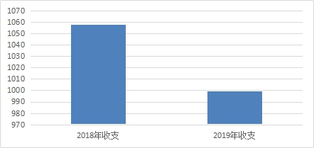 2019年度收、支总计999.64万元。与2018年相比,收、支总计各减少58.54万元,下降5.86%。主要变动原因是人员经费减少。